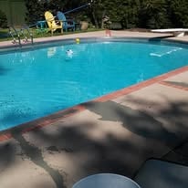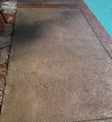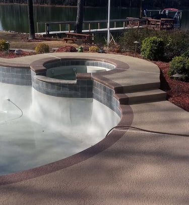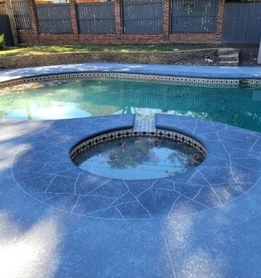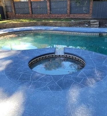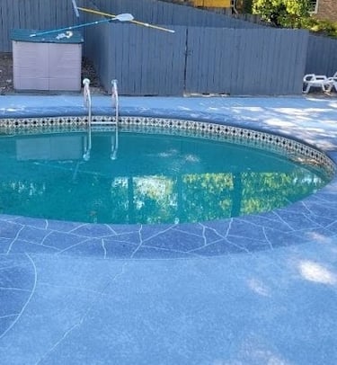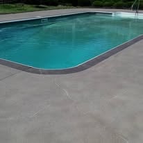 Examples of sprayed concrete overlays on pool decks.