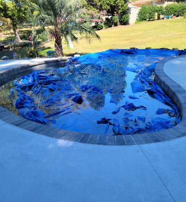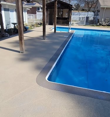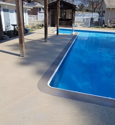 It’s a thin, durable overlay applied to pool decks for a smooth finish.